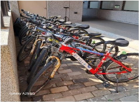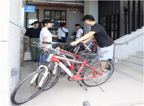 | 說明:校區配置16部變速腳踏車 | 說明:學生主動保養腳踏車 | |